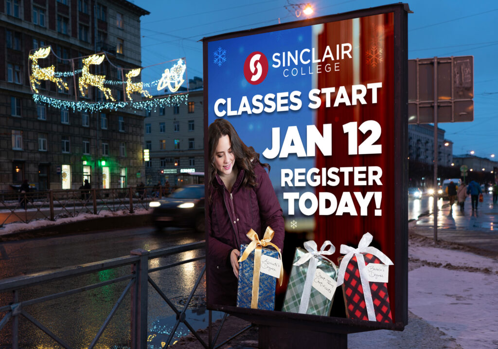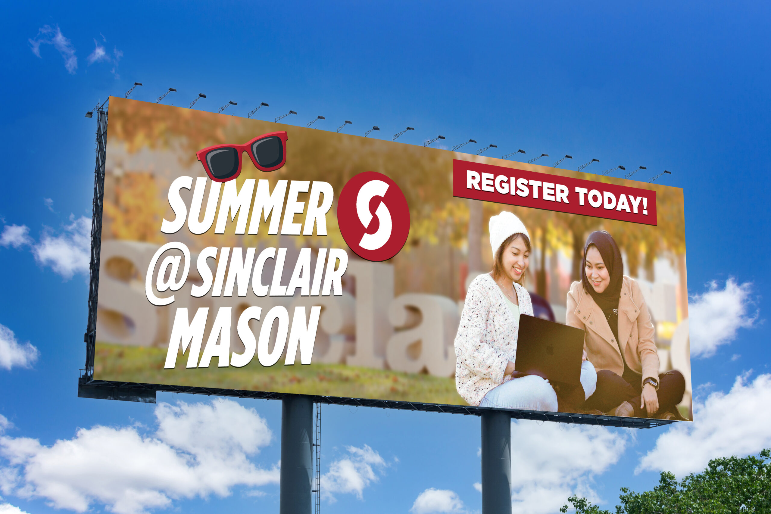 Another fun billboard creation with the concept of a "Summer" and "outdoors" vibe. The goal to capture the attention of students to remind them to register for Summer courses at Sinclair. My objective was to keep it fun, within Sinclair branding and legible when passing by on the highway from Mason, OH.